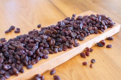 Thompson seedless raisins are prepared from whole, unlyed seedless white grapes, harvested and dried in the sun to produce brown to dark brown colour raisins.